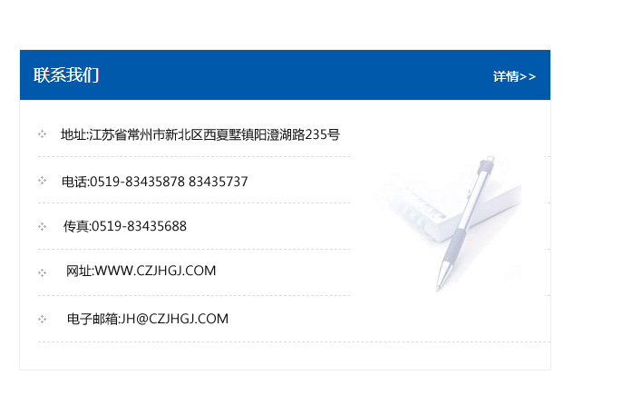 地址:常州市新北區友邦商務大廈1幢16、17層  電話:0519-85101652  傳真:0519-85112595  郵編:213022  網址:www.cz-jiayue_cn.exide-world.com  郵箱:xiajifengaa@163.com